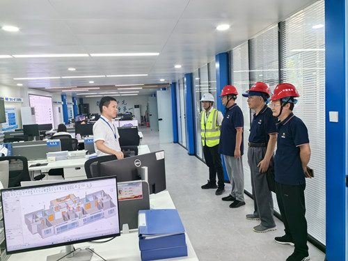 7月5日下午2点30分,湖北环鹏建设管理有限公司技术负责人李满生带领公司总监、总监代表共9人来到了位于武汉市江岸区二七滨江天地商圈的中建壹品·汉芯公馆项目部参观学习。 在施工总承包单位负责人刘总的带领下,环鹏公司一行人先后参观了汉芯公馆项目数字建造中心、综合调度室、项目智能塔机集控室、5#楼装配式造楼机、2#楼三层装修样板间等。 在数字建造中心,其技术负责人为我们详细介绍了建筑业生产新模式,主要包括:基于国产 BIM 的标准化、模数化正向协同设计、数据交互、数据驱动工厂和管理、介绍智能建造平台、产业工人服务系统(云采科技)等。在综合调度室和项目智能塔机集控室,我们也见识到了智慧工地和塔机远程集中控制的魅力。塔机智能集控中心是汉芯公馆项目智能建造体系重要组成部分,项目全部7台塔机均采用远程集中控制。由中建三局自主研发设计的塔机智能集控系统,将塔机控制室从塔机顶部搬到地面。地面室内集约化作业让塔机司机再也“不用爬上爬下,无需忍受高温严寒”。塔机智能集控系统使整体吊装效率提升15%以上。 中建三局充分发挥了中国建筑业排头兵的作用,以“数据驱动、人机协同、价值创造”为目标打造的DDE平台,初步实现了数据贯通、数字孪生,以及数据驱动项目管理、数据驱动工厂、数据驱动装备。汉芯公馆试点项目,为“四化同步、一体推进”智能建造提供了设计、生产、建造全生命周期的系统解决方案。